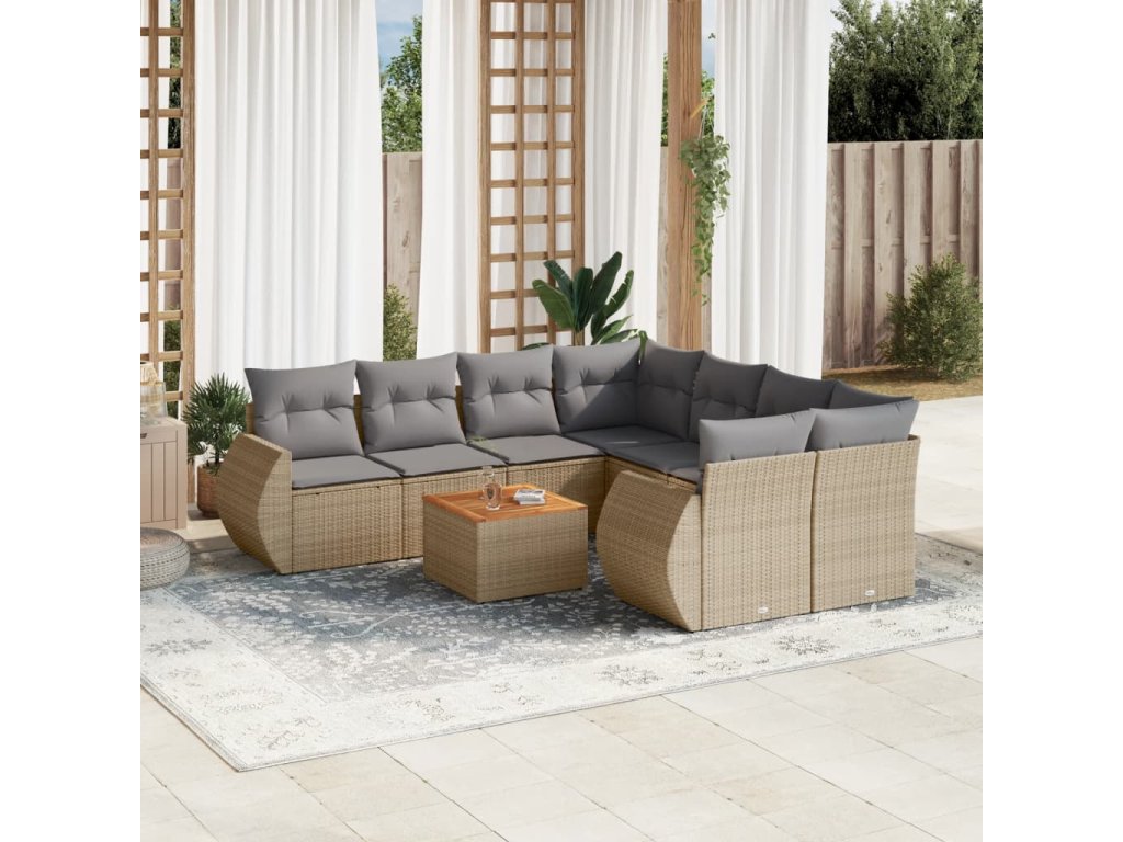 9dílná zahradní sedací souprava s poduškami béžová polyratan 3224932