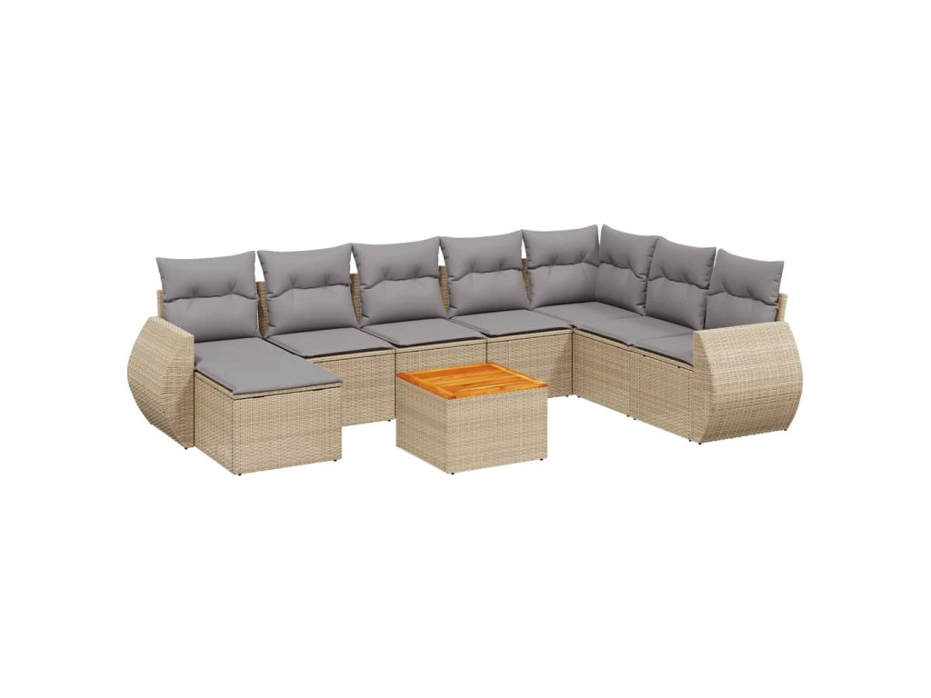 9dílná zahradní sedací souprava s poduškami béžová polyratan 3225142