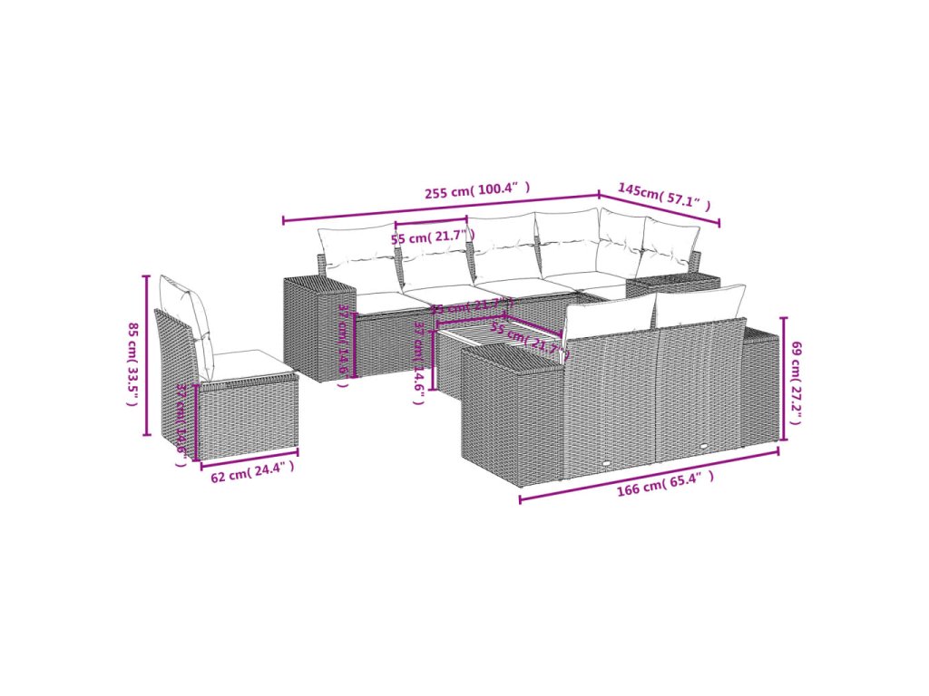 9dílná zahradní sedací souprava s poduškami béžová polyratan 3225541