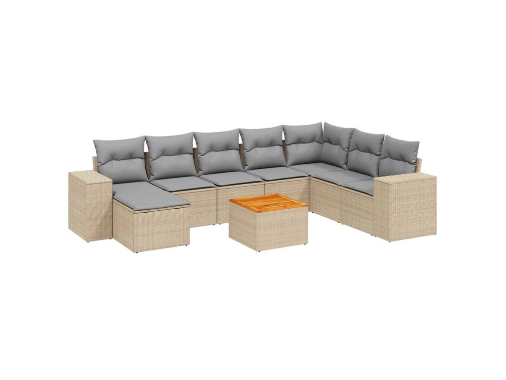 9dílná zahradní sedací souprava s poduškami béžová polyratan 3225583