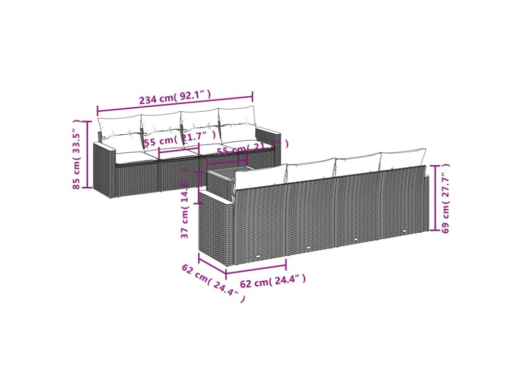 Tato zahradní sedací souprava je dokonalým doplňkem vaší zahrady, terasy nebo dvorku a poskytne vám pohodlné a příjemné místo, kde si můžete povídat s rodinou a přáteli nebo jen tak odpočívat a užívat si pobyt venku.
