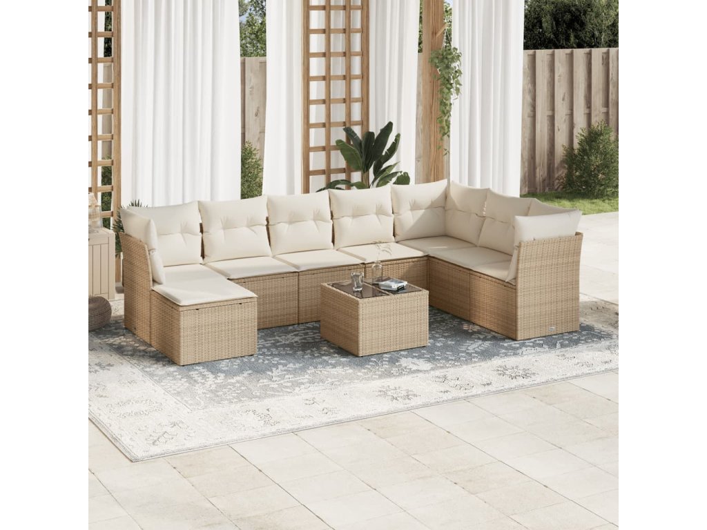 9dílná zahradní sedací souprava s poduškami béžová polyratan 3249897