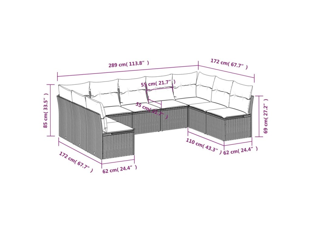 9dílná zahradní sedací souprava s poduškami béžová polyratan 3249908