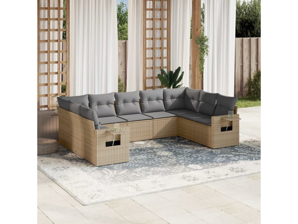 9dílná zahradní sedací souprava s poduškami béžová polyratan 3252936