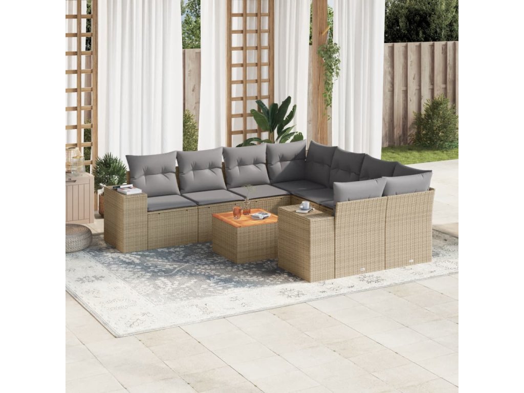 9dílná zahradní sedací souprava s poduškami béžová polyratan 3257704