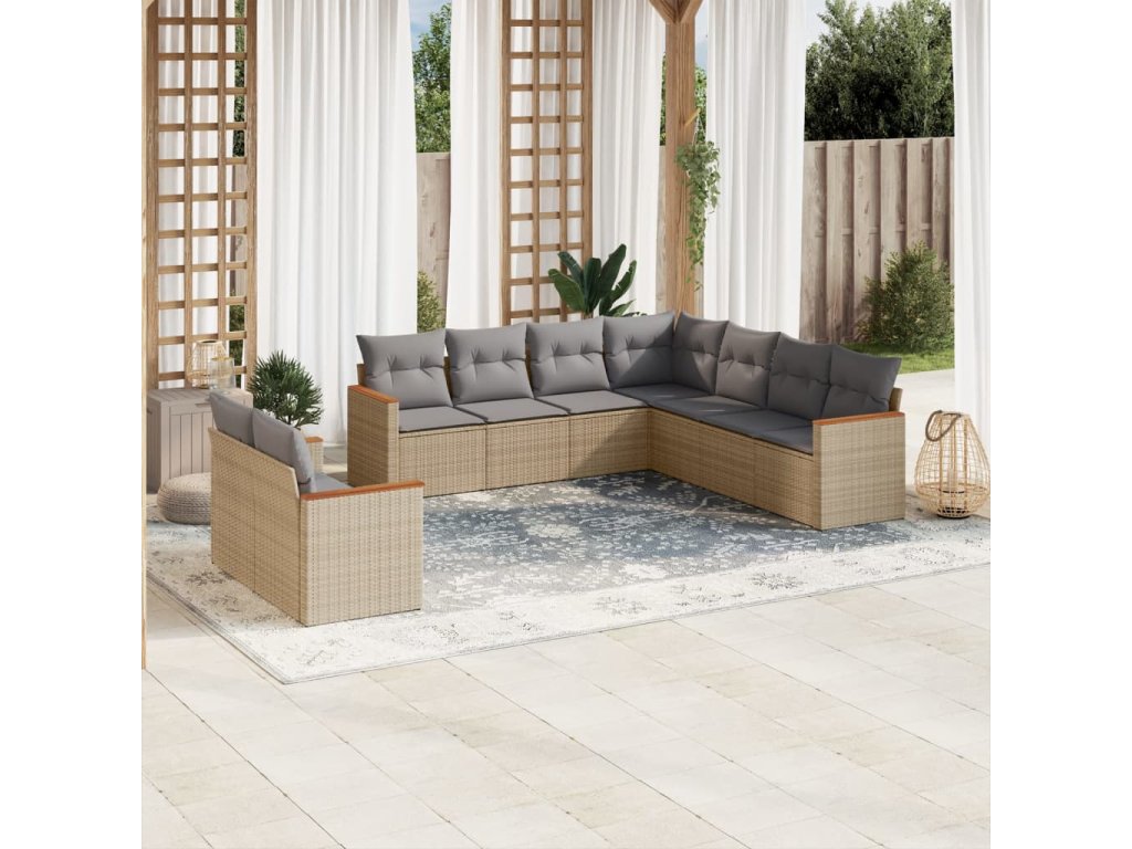 9dílná zahradní sedací souprava s poduškami béžová polyratan 3258503