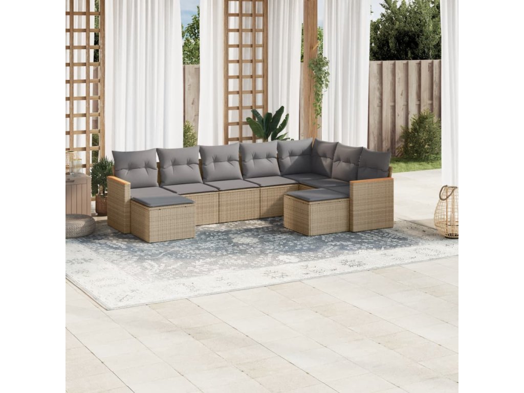9dílná zahradní sedací souprava s poduškami béžová polyratan 3258944
