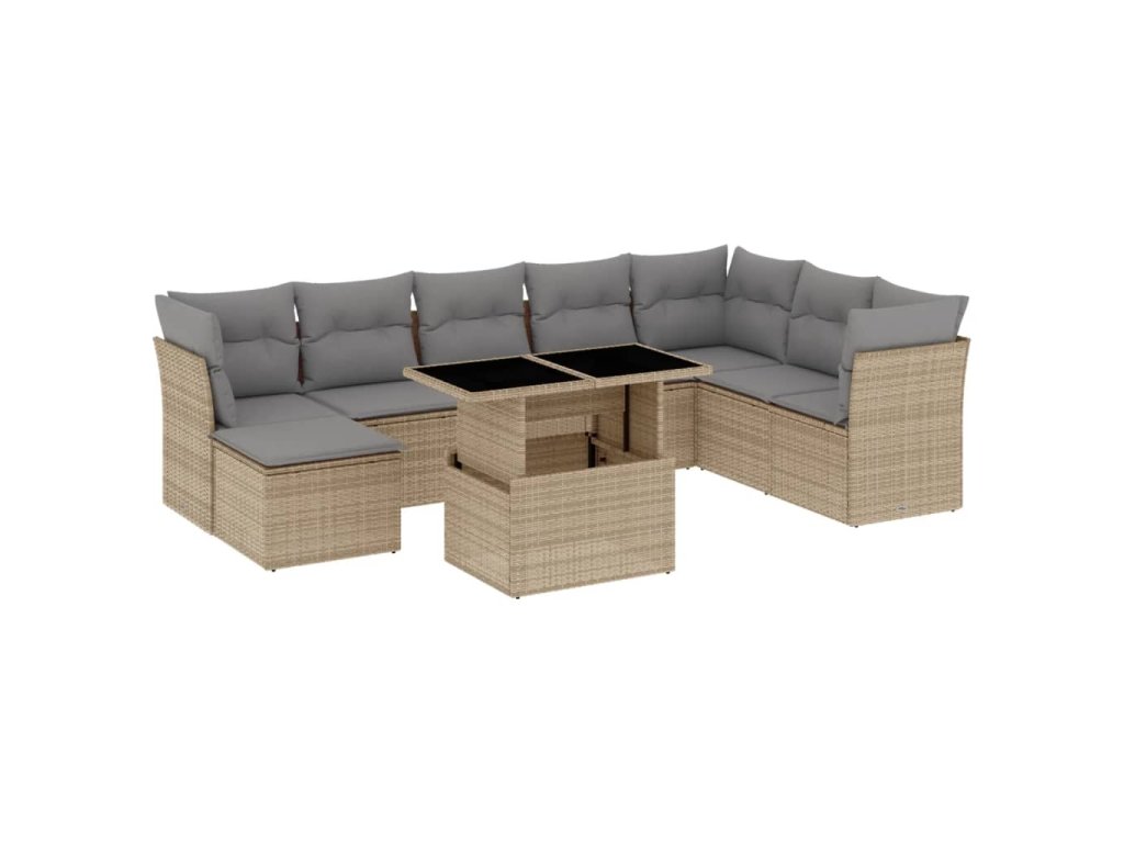 9dílná zahradní sedací souprava s poduškami béžová polyratan 3266789