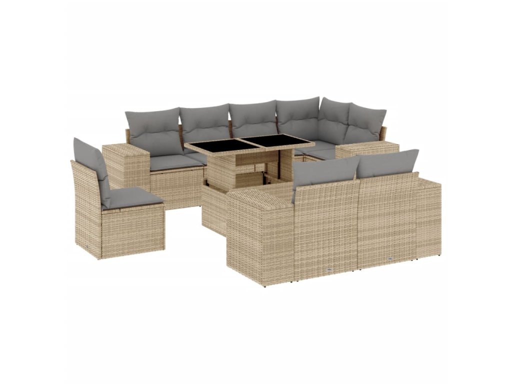 9dílná zahradní sedací souprava s poduškami béžová polyratan 3269299