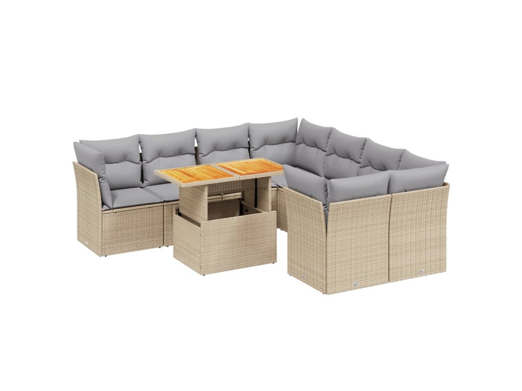 9dílná zahradní sedací souprava s poduškami béžová polyratan 3270723