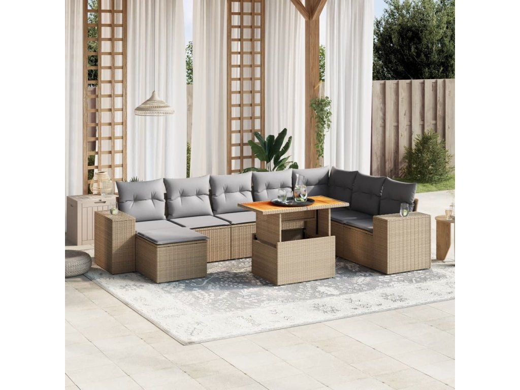 9dílná zahradní sedací souprava s poduškami béžová polyratan 3272774