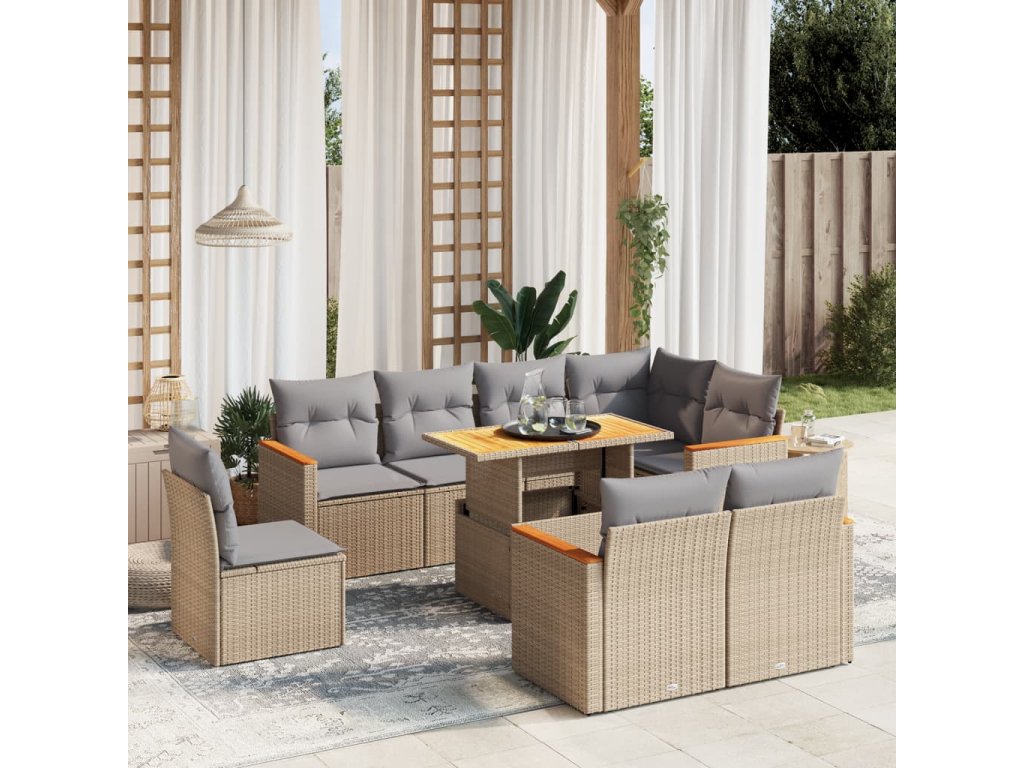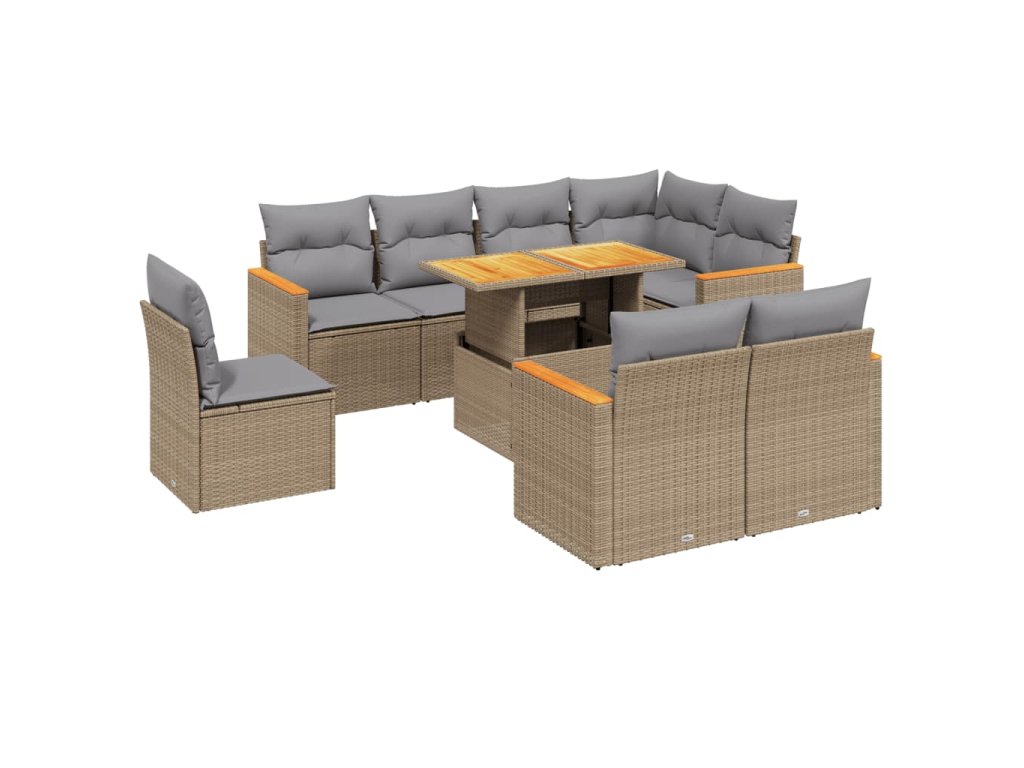 9dílná zahradní sedací souprava s poduškami béžová polyratan 3273173