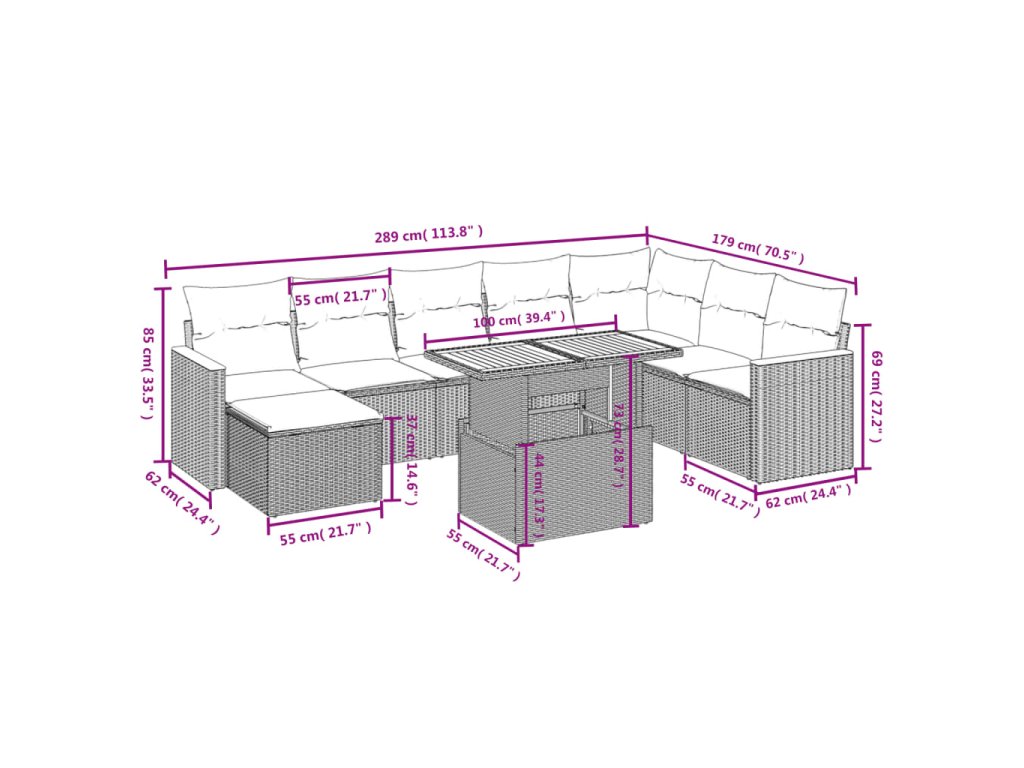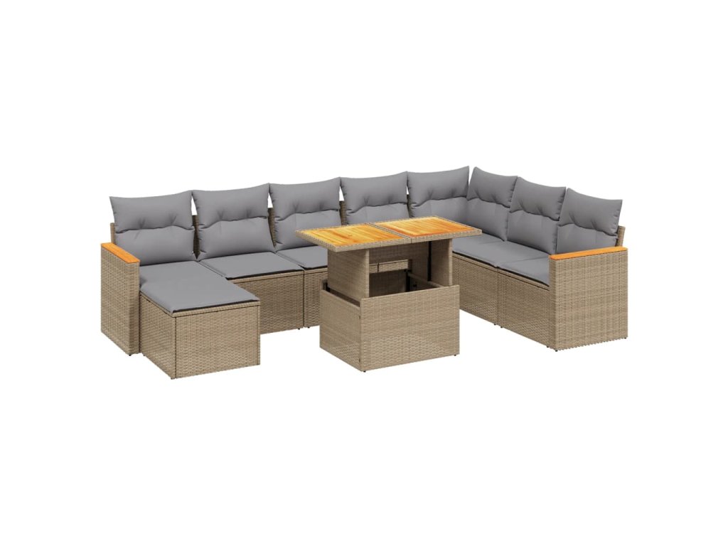 9dílná zahradní sedací souprava s poduškami béžová polyratan 3273215