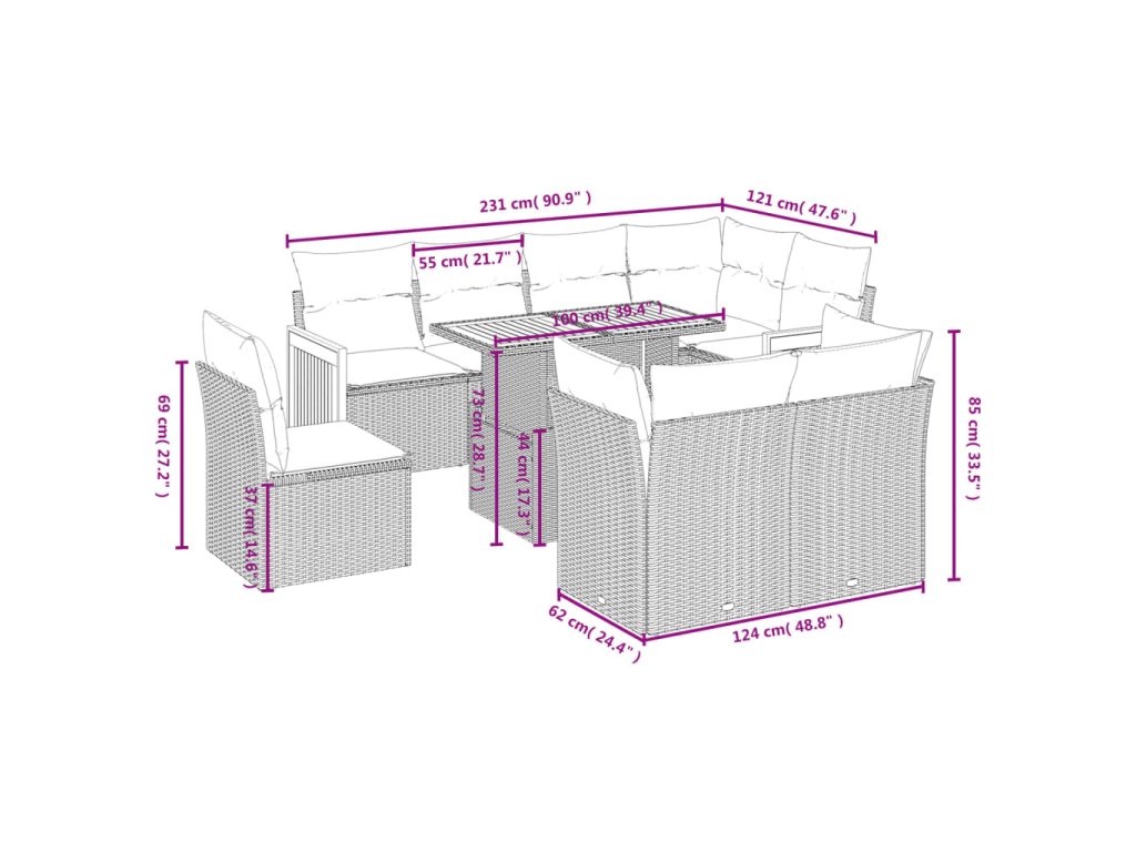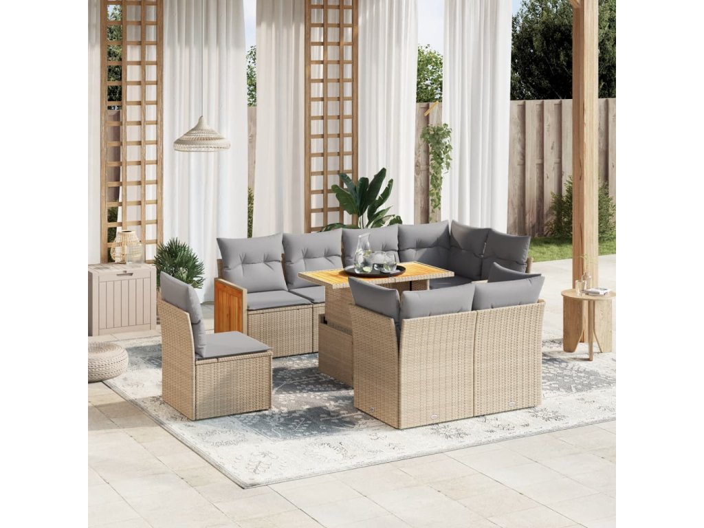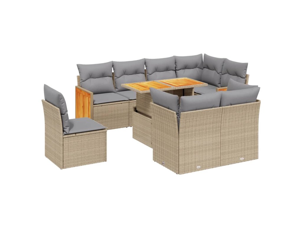9dílná zahradní sedací souprava s poduškami béžová polyratan 3274055