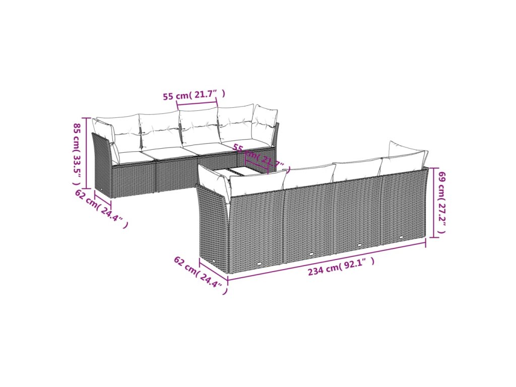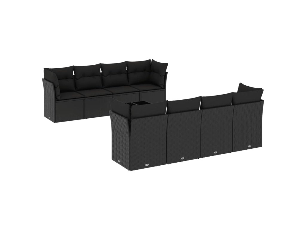 9dílná zahradní sedací souprava s poduškami černá polyratan 3217305