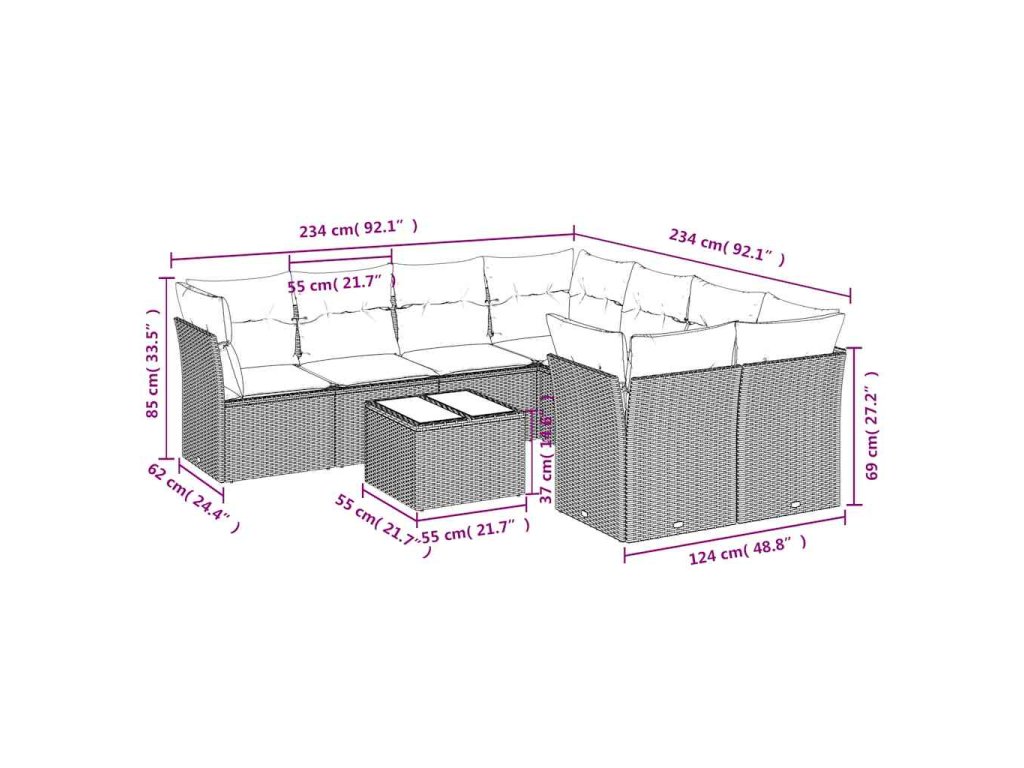 9dílná zahradní sedací souprava s poduškami černá polyratan 3217316