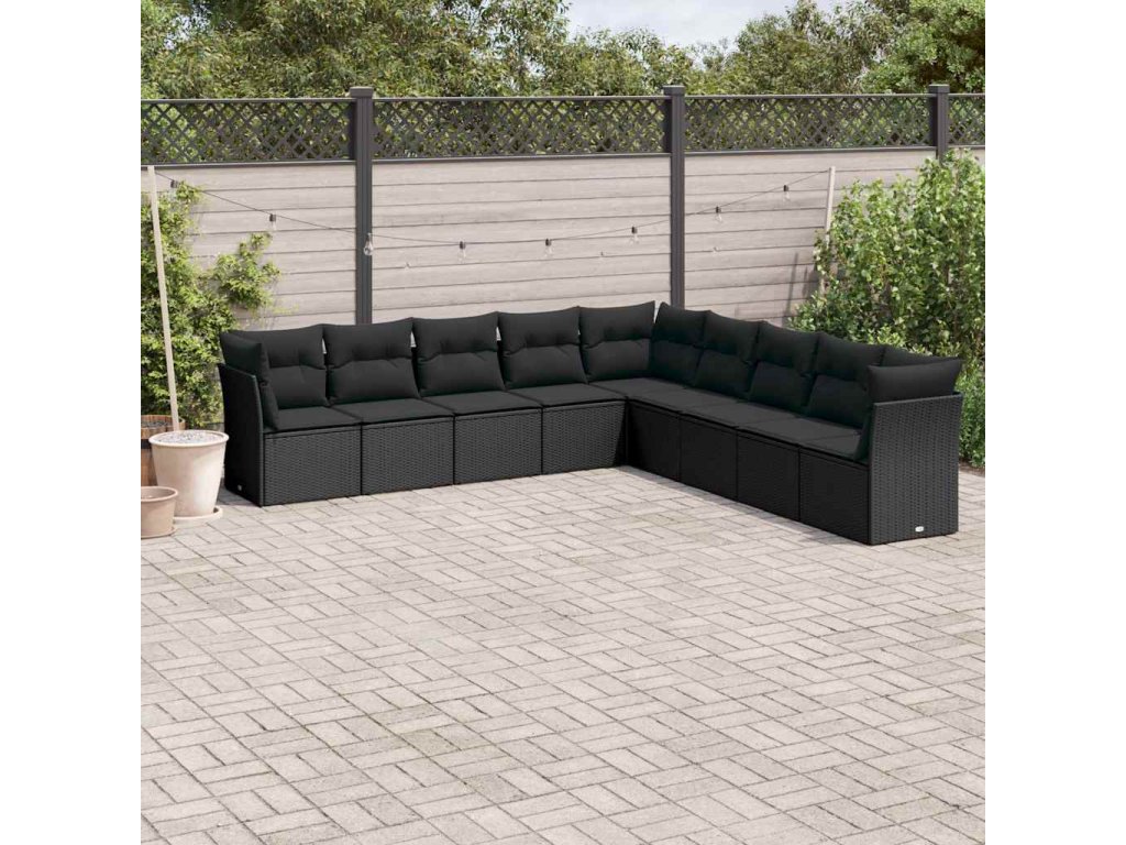 9dílná zahradní sedací souprava s poduškami černá polyratan 3217775