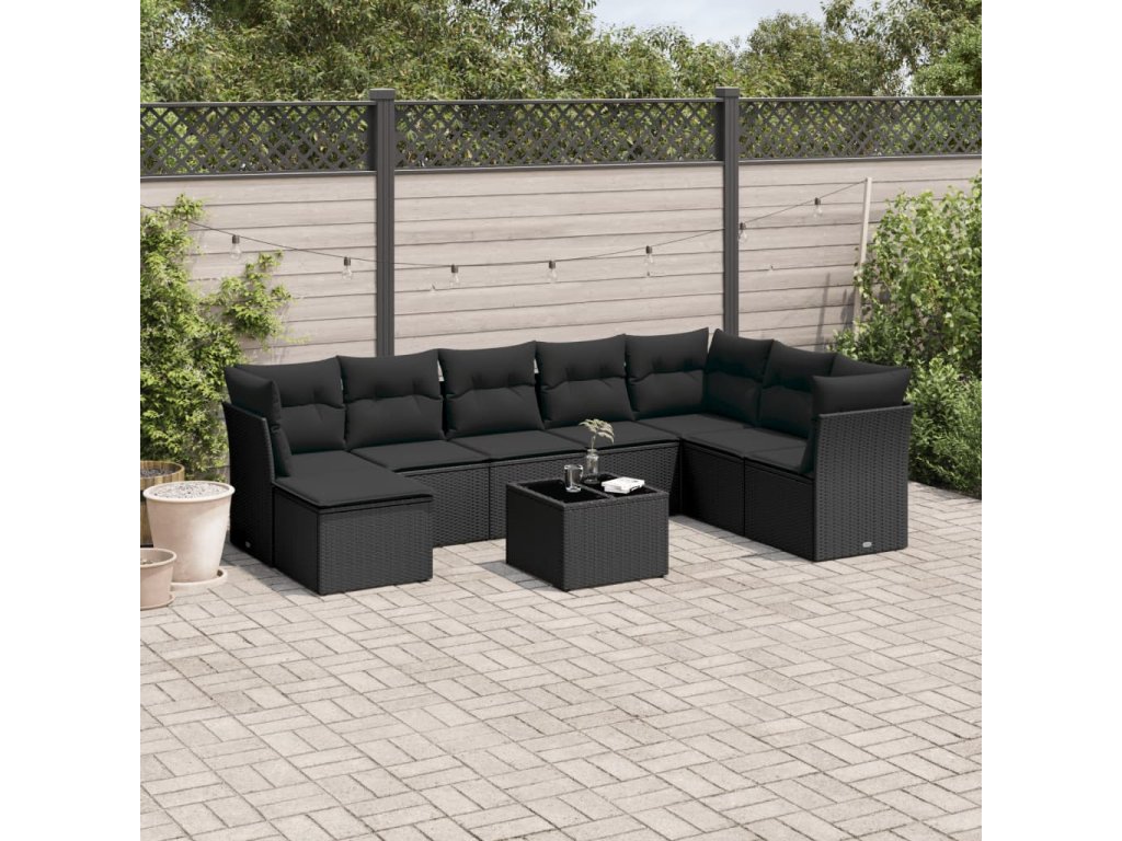 9dílná zahradní sedací souprava s poduškami černá polyratan 3218055