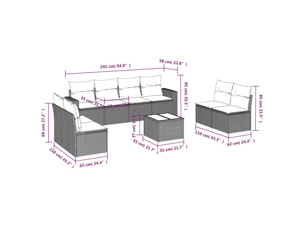 - Modulární design: Tato sada venkovního nábytku se vyznačuje modulární konstrukcí, je tedy zcela flexibilní a lze ji snadno přemisťovat, takže si můžete uspořádat venkovní nábytek dle vašich potřeb.