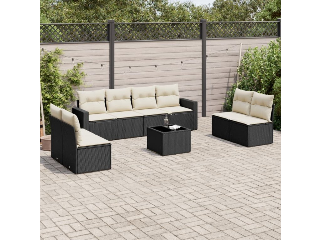 9dílná zahradní sedací souprava s poduškami černá polyratan 3218846