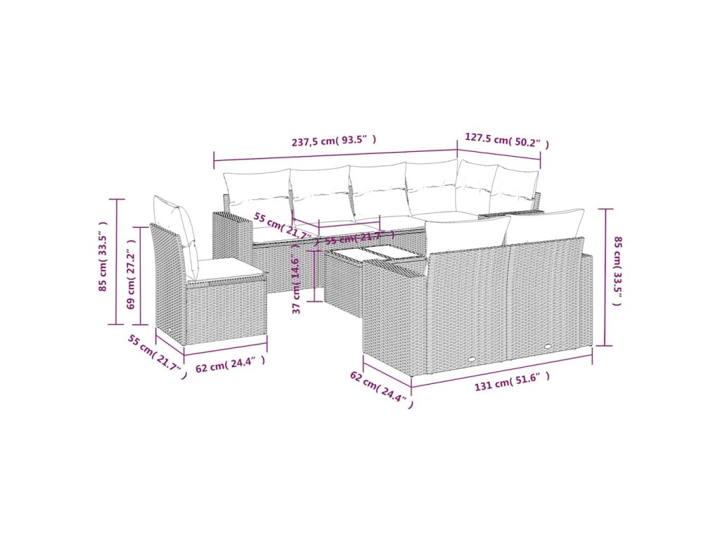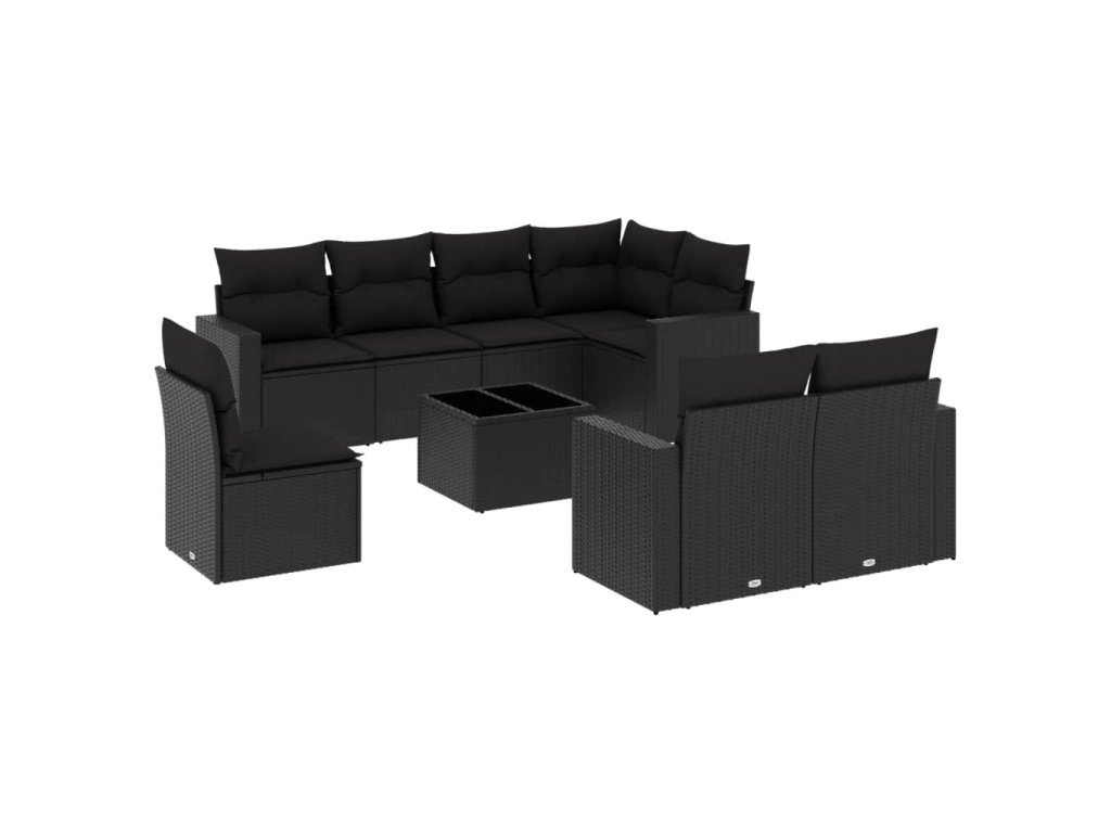 9dílná zahradní sedací souprava s poduškami černá polyratan 3219235