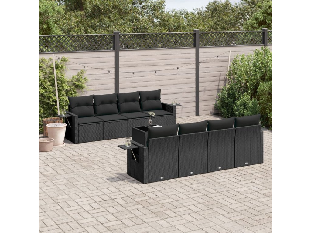 9dílná zahradní sedací souprava s poduškami černá polyratan 3219944