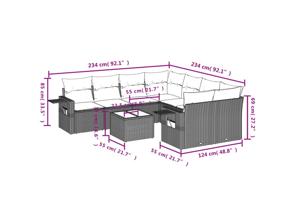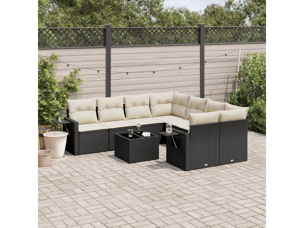 9dílná zahradní sedací souprava s poduškami černá polyratan 3219955