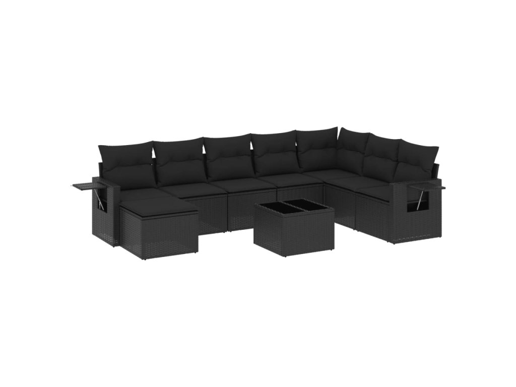 9dílná zahradní sedací souprava s poduškami černá polyratan 3220564