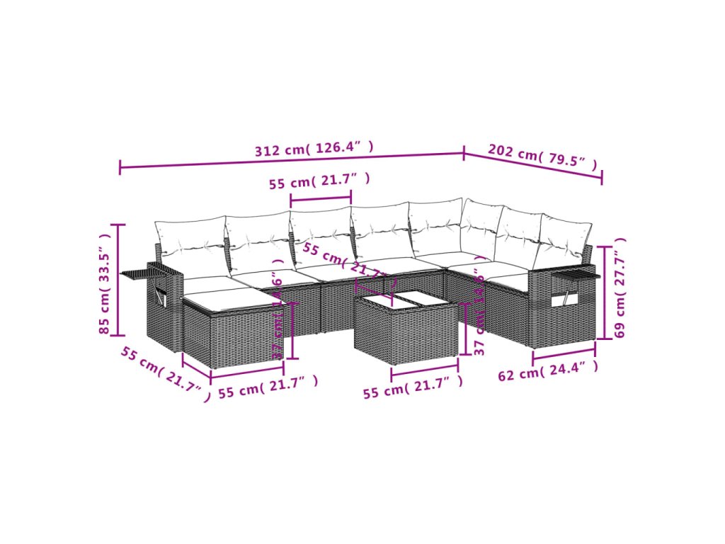 - Modulární design: Tato sada venkovního nábytku se vyznačuje modulární konstrukcí, je tedy zcela flexibilní a lze ji snadno přemisťovat, takže si můžete uspořádat venkovní nábytek dle vašich potřeb.