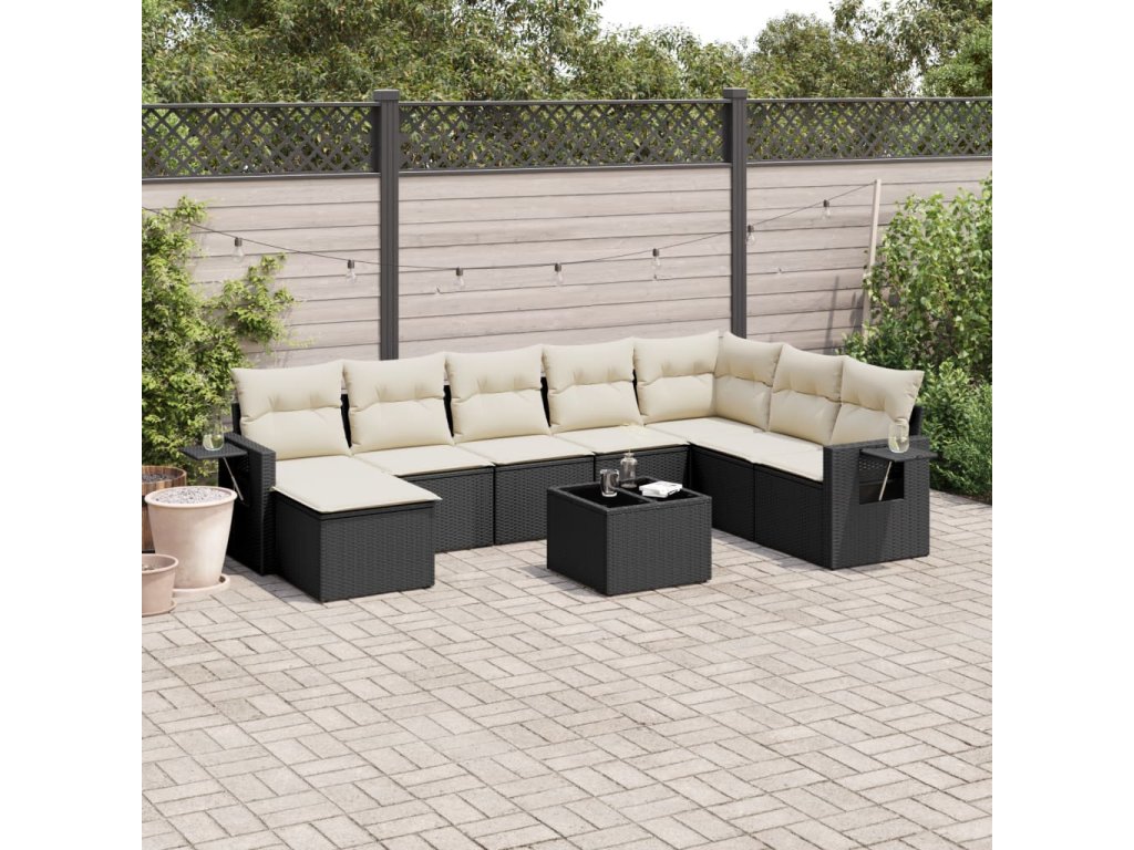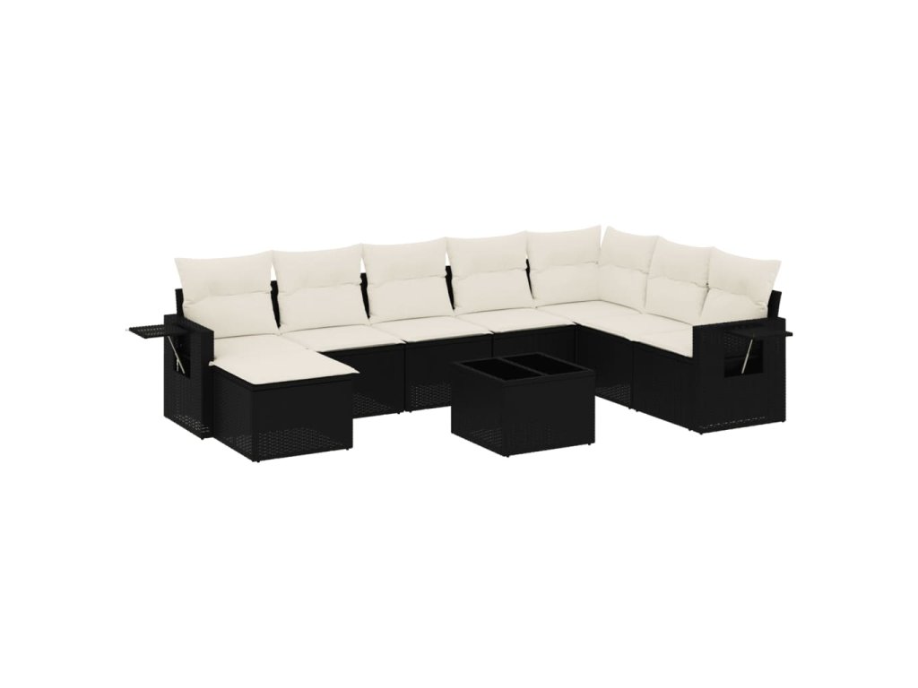 9dílná zahradní sedací souprava s poduškami černá polyratan 3220565