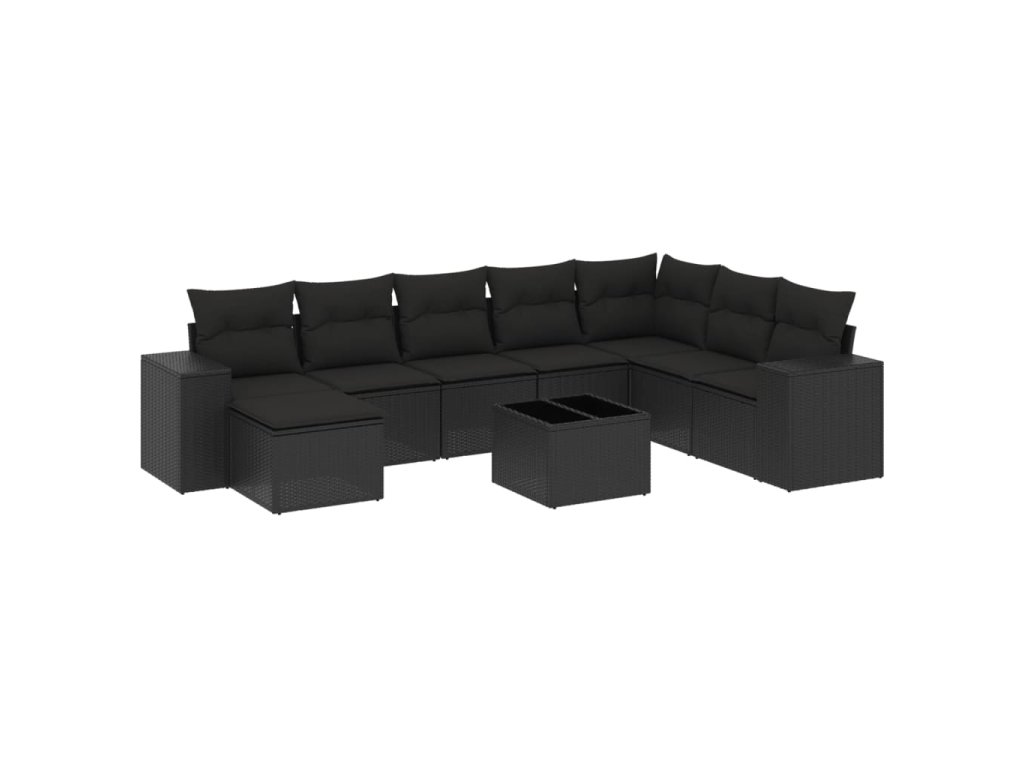 9dílná zahradní sedací souprava s poduškami černá polyratan 3222964
