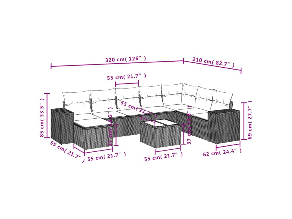 Tato zahradní sedací souprava je dokonalým doplňkem vaší zahrady, terasy nebo dvorku a poskytne vám pohodlné a příjemné místo, kde si můžete povídat s rodinou a přáteli nebo jen tak odpočívat a užívat si pobyt venku.