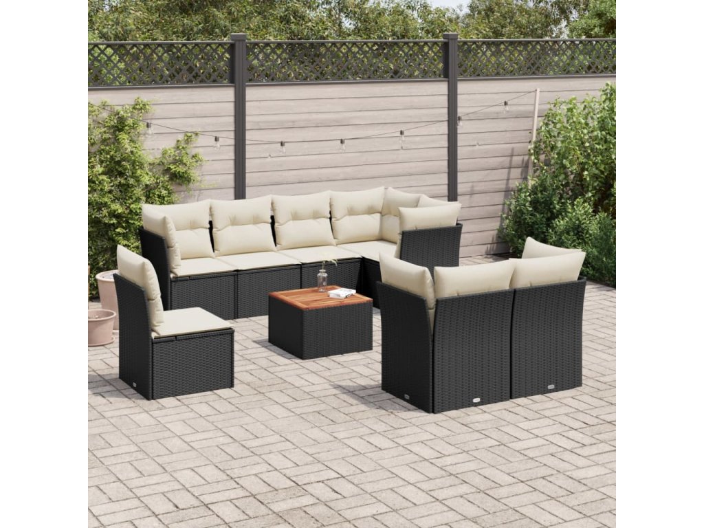 9dílná zahradní sedací souprava s poduškami černá polyratan 3223739