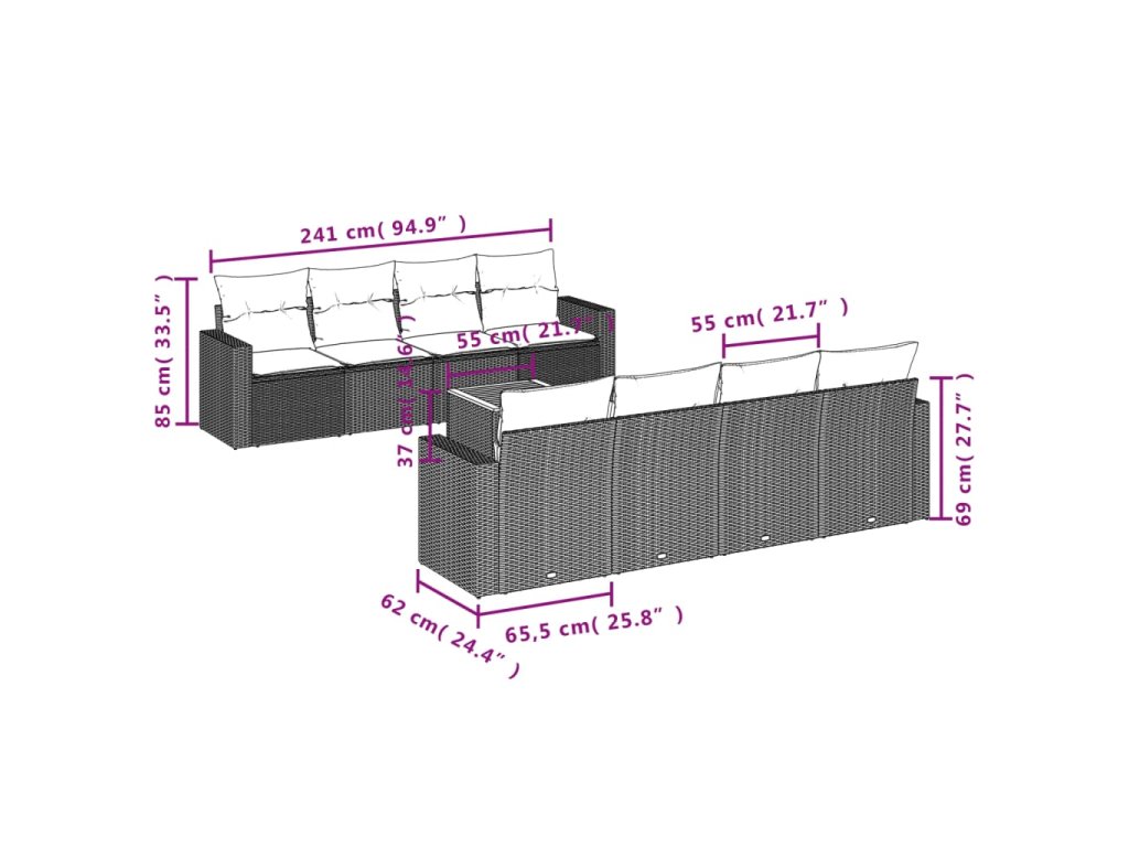9dílná zahradní sedací souprava s poduškami černá polyratan 3224040
