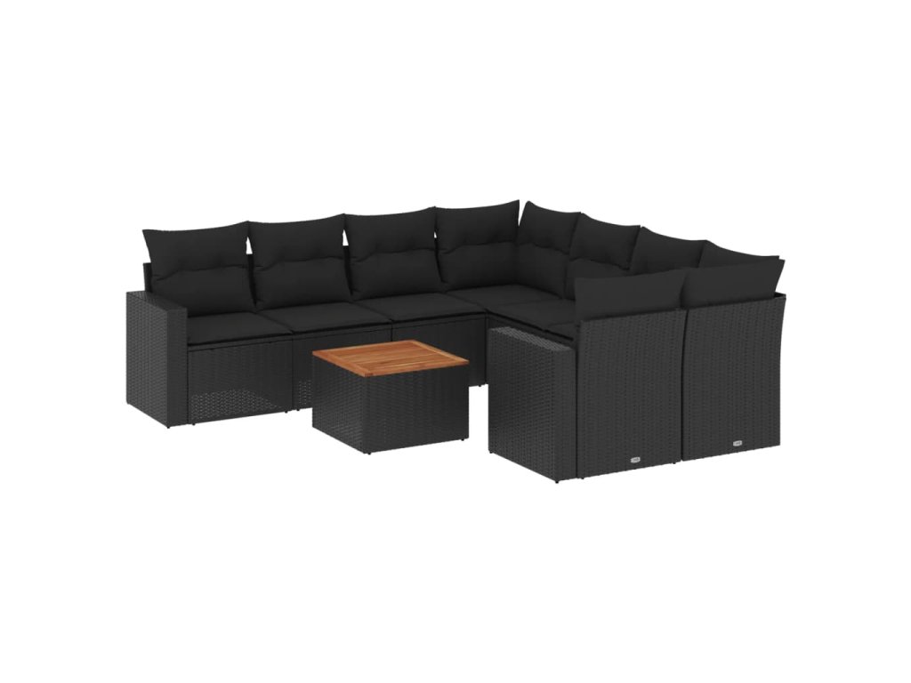 9dílná zahradní sedací souprava s poduškami černá polyratan 3224046