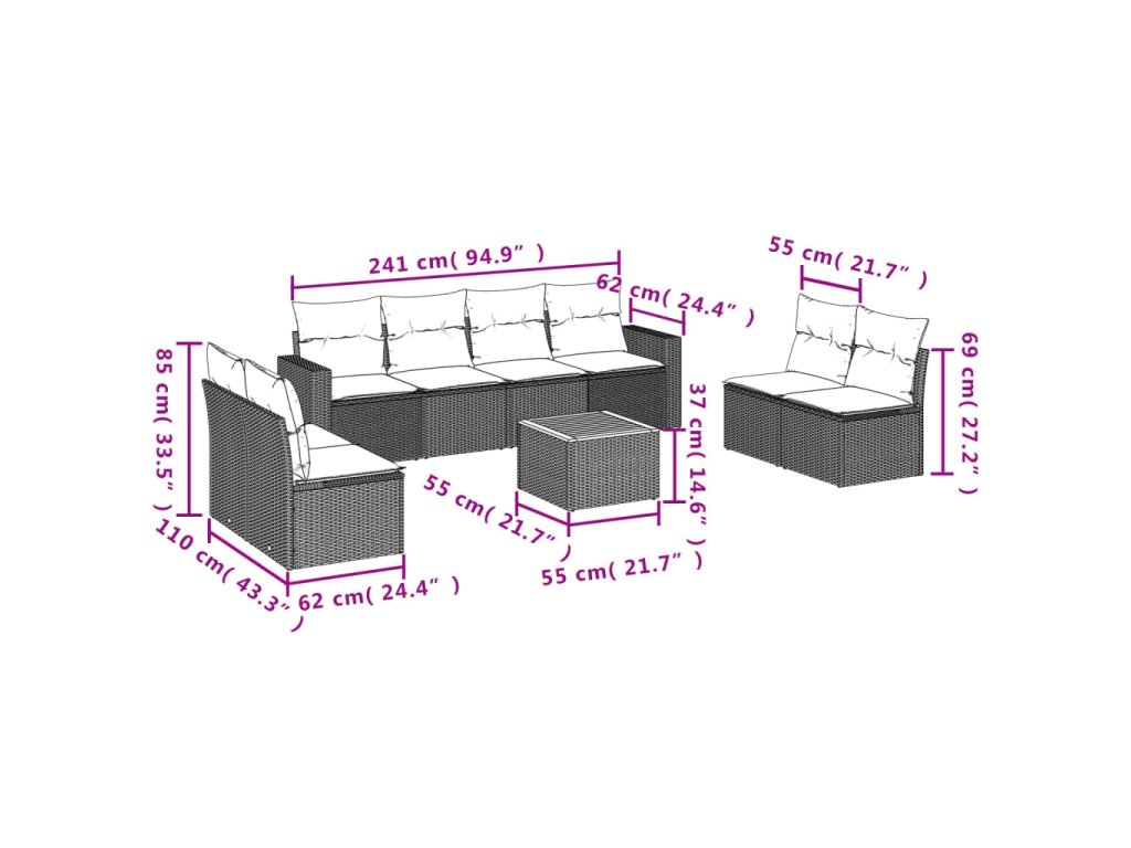 Tato zahradní sedací souprava je dokonalým doplňkem vaší zahrady, terasy nebo dvorku a poskytne vám pohodlné a příjemné místo, kde si můžete povídat s rodinou a přáteli nebo jen tak odpočívat a užívat si pobyt venku.