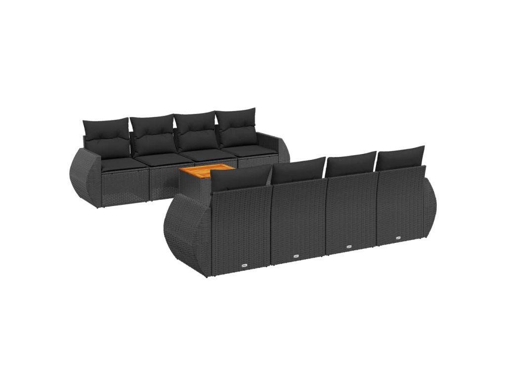 9dílná zahradní sedací souprava s poduškami černá polyratan 3224921