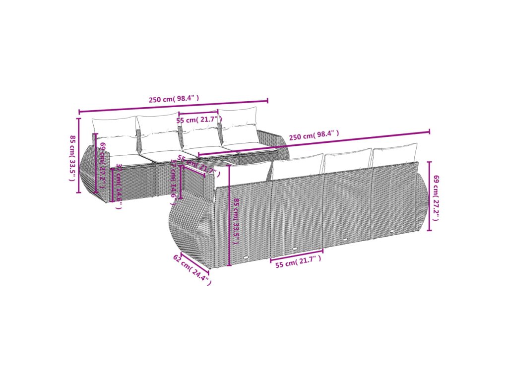 Tato zahradní sedací souprava je dokonalým doplňkem vaší zahrady, terasy nebo dvorku a poskytne vám pohodlné a příjemné místo, kde si můžete povídat s rodinou a přáteli nebo jen tak odpočívat a užívat si pobyt venku.