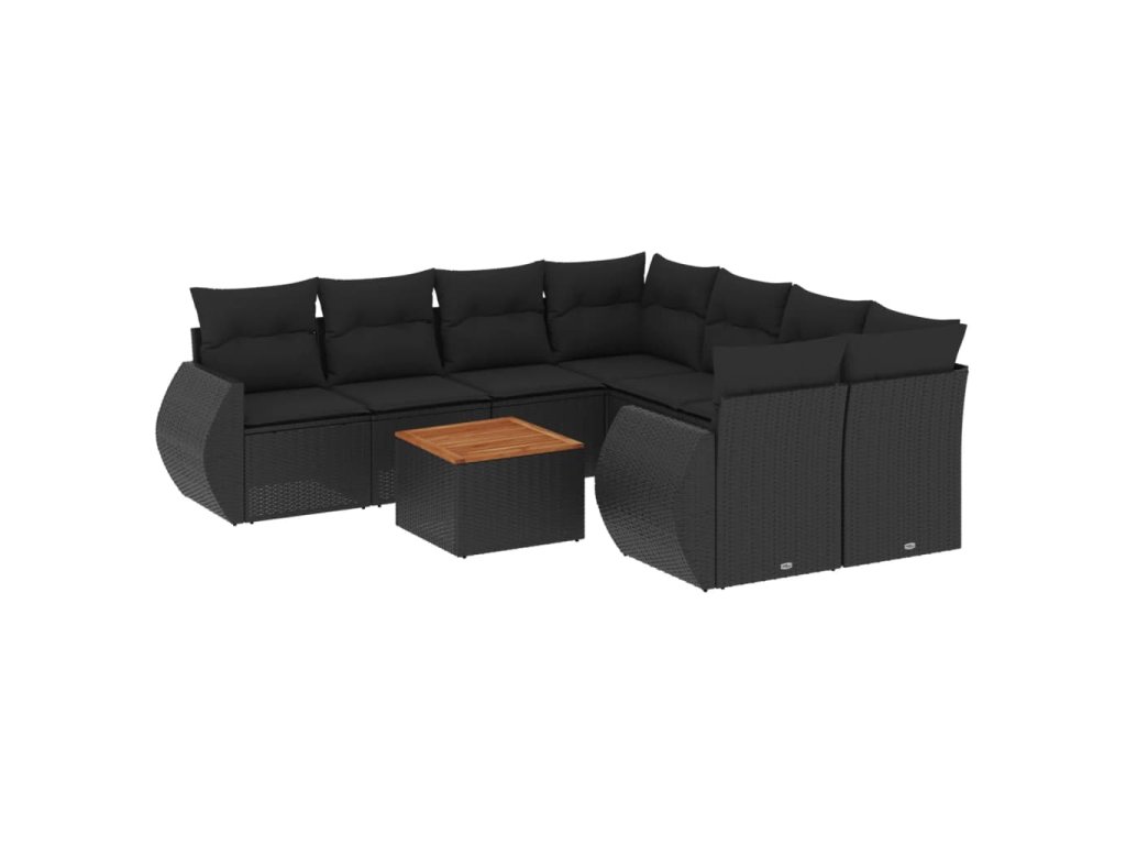 9dílná zahradní sedací souprava s poduškami černá polyratan 3224928