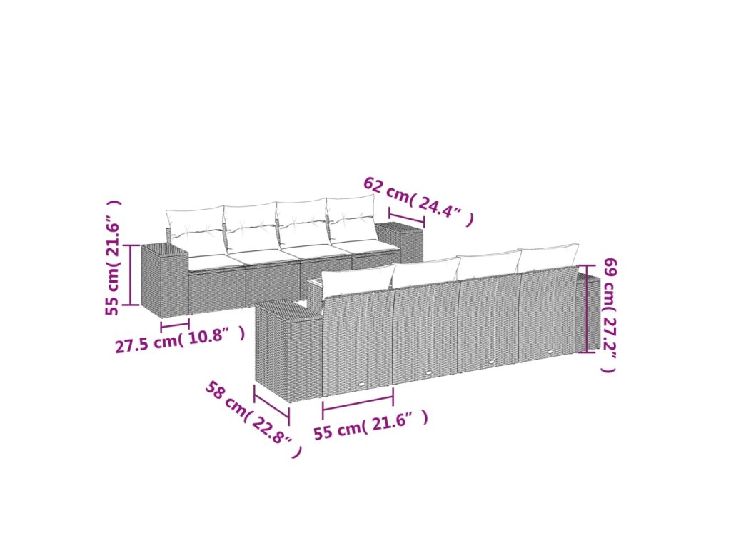 Tato zahradní sedací souprava je dokonalým doplňkem vaší zahrady, terasy nebo dvorku a poskytne vám pohodlné a příjemné místo, kde si můžete povídat s rodinou a přáteli nebo jen tak odpočívat a užívat si pobyt venku.