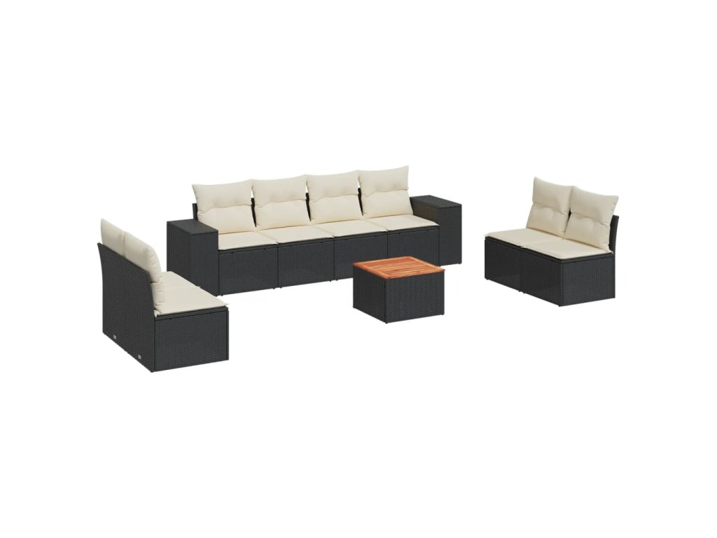 9dílná zahradní sedací souprava s poduškami černá polyratan 3225405