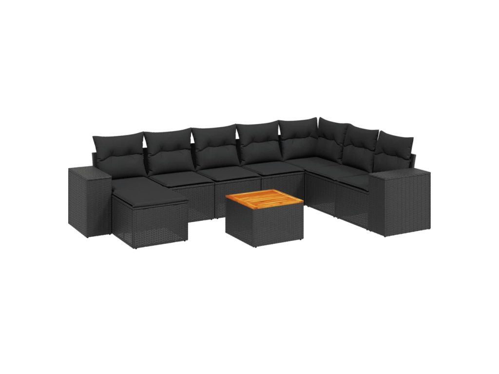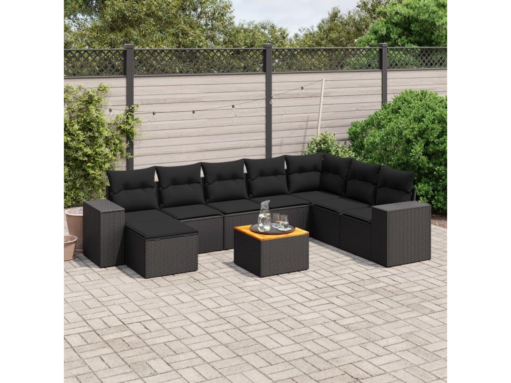 9dílná zahradní sedací souprava s poduškami černá polyratan 3225579
