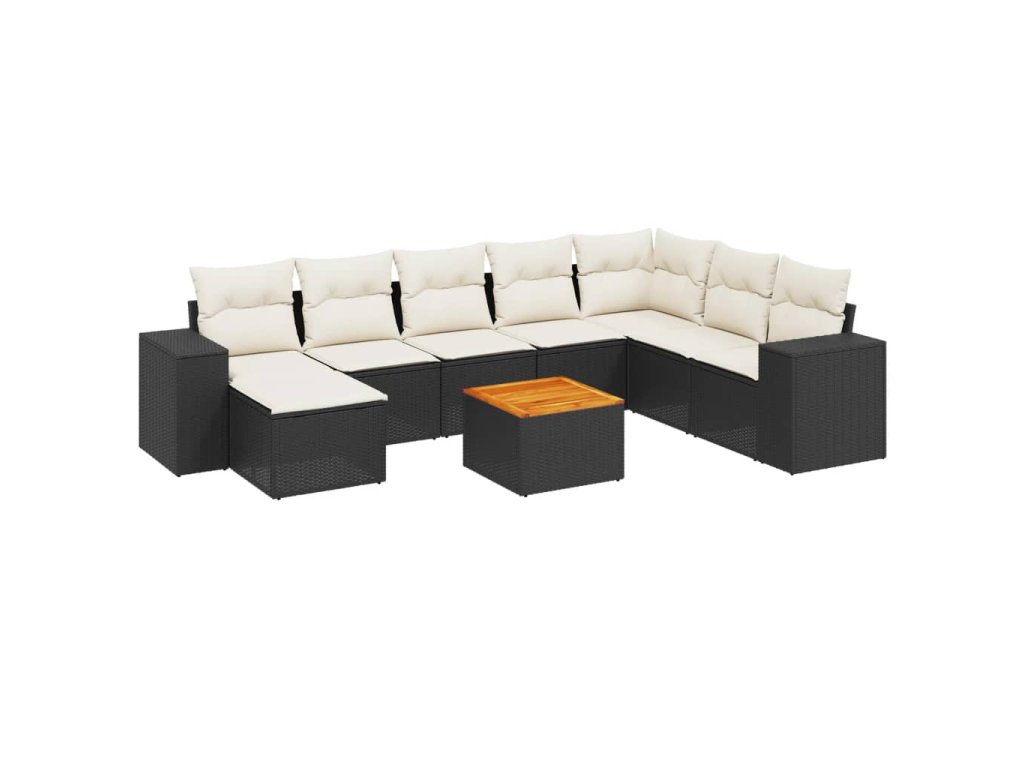 9dílná zahradní sedací souprava s poduškami černá polyratan 3225580