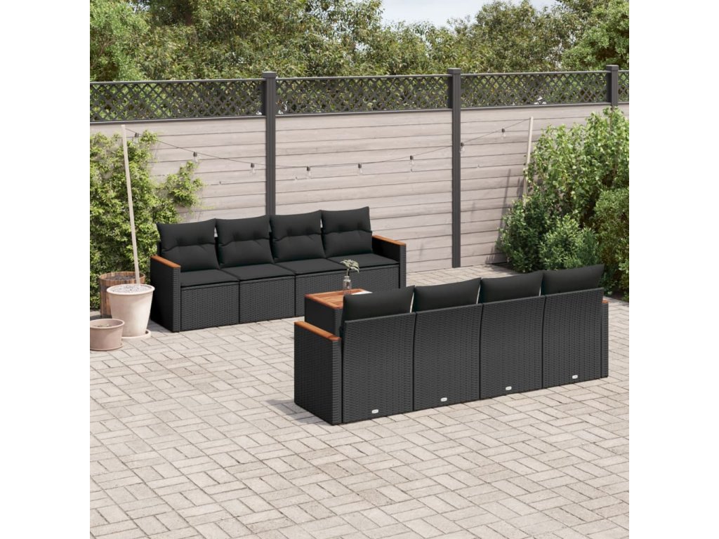 9dílná zahradní sedací souprava s poduškami černá polyratan 3225817