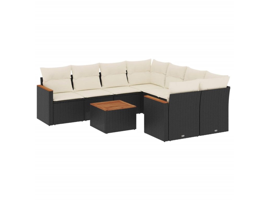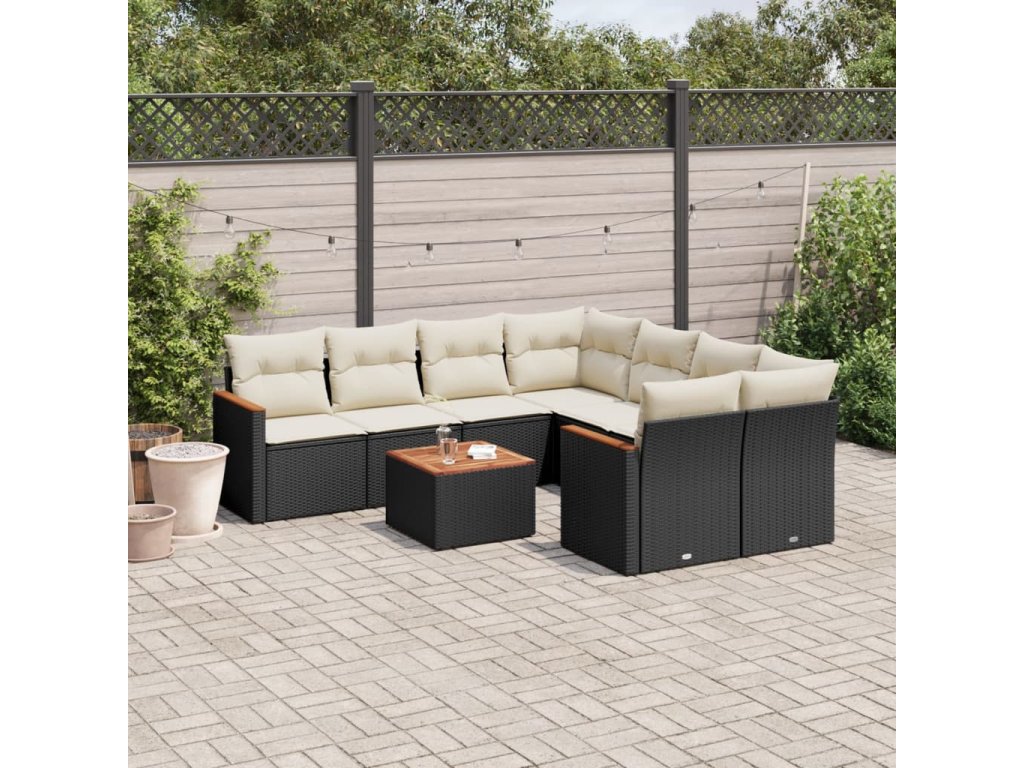 9dílná zahradní sedací souprava s poduškami černá polyratan 3225825