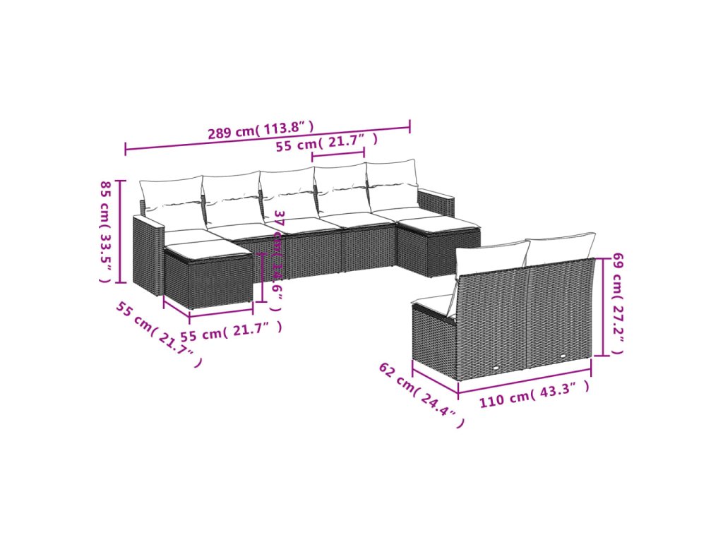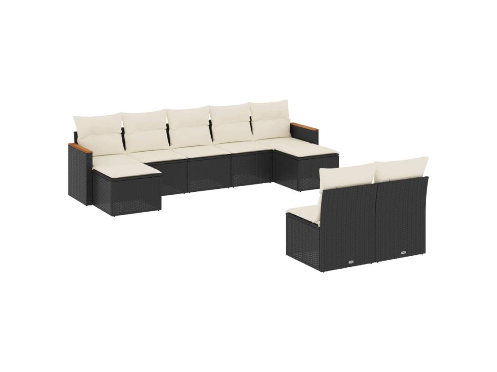 9dílná zahradní sedací souprava s poduškami černá polyratan 3226371
