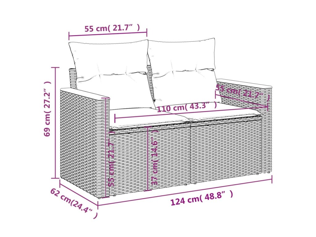 Tato zahradní sedací souprava je dokonalým doplňkem vaší zahrady, terasy nebo dvorku a poskytne vám pohodlné a příjemné místo, kde si můžete povídat s rodinou a přáteli nebo jen tak odpočívat a užívat si pobyt venku.