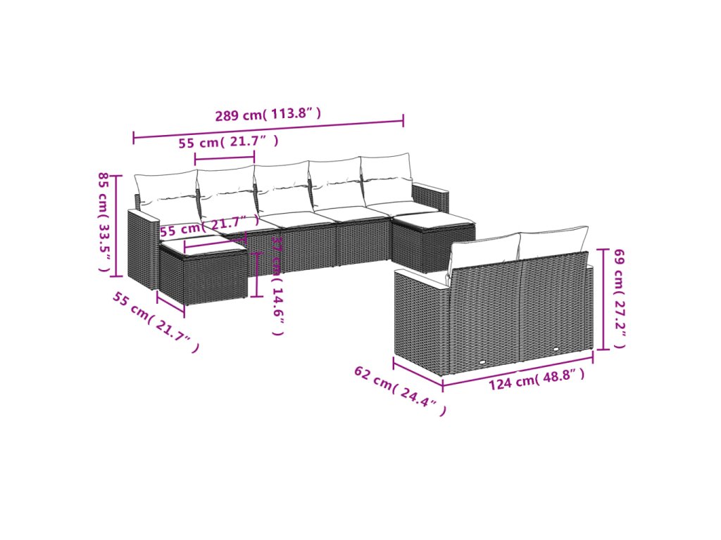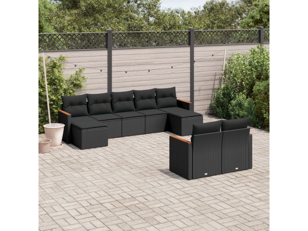 9dílná zahradní sedací souprava s poduškami černá polyratan 3226398