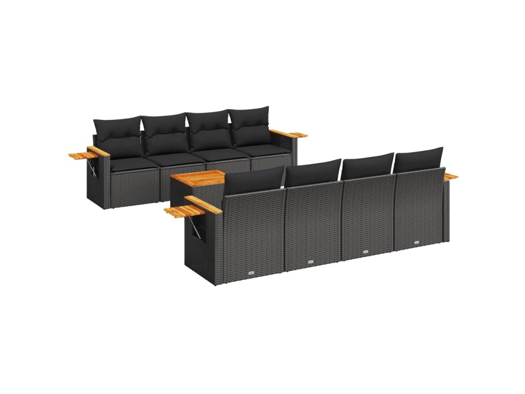 9dílná zahradní sedací souprava s poduškami černá polyratan 3226657