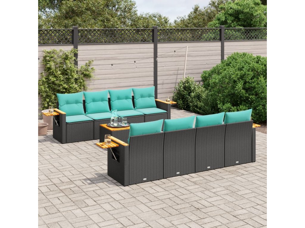9dílná zahradní sedací souprava s poduškami černá polyratan 3226659